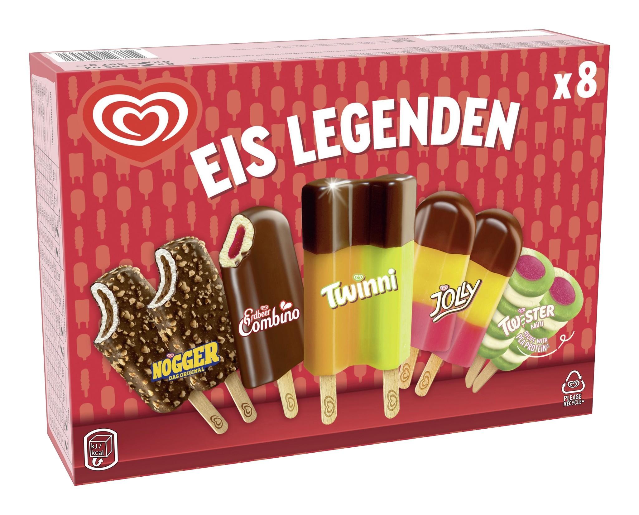 Alle Eis Legenden Österreichs in einer Packung! Hier finden alle Eisgenießer ihre Lieblingssorte in der bewährten Qualität und in großer Auswahl. Ob Twister Mini, Nogger, Erdbeer Combino, Twinni, Jolly oder Brickerl.