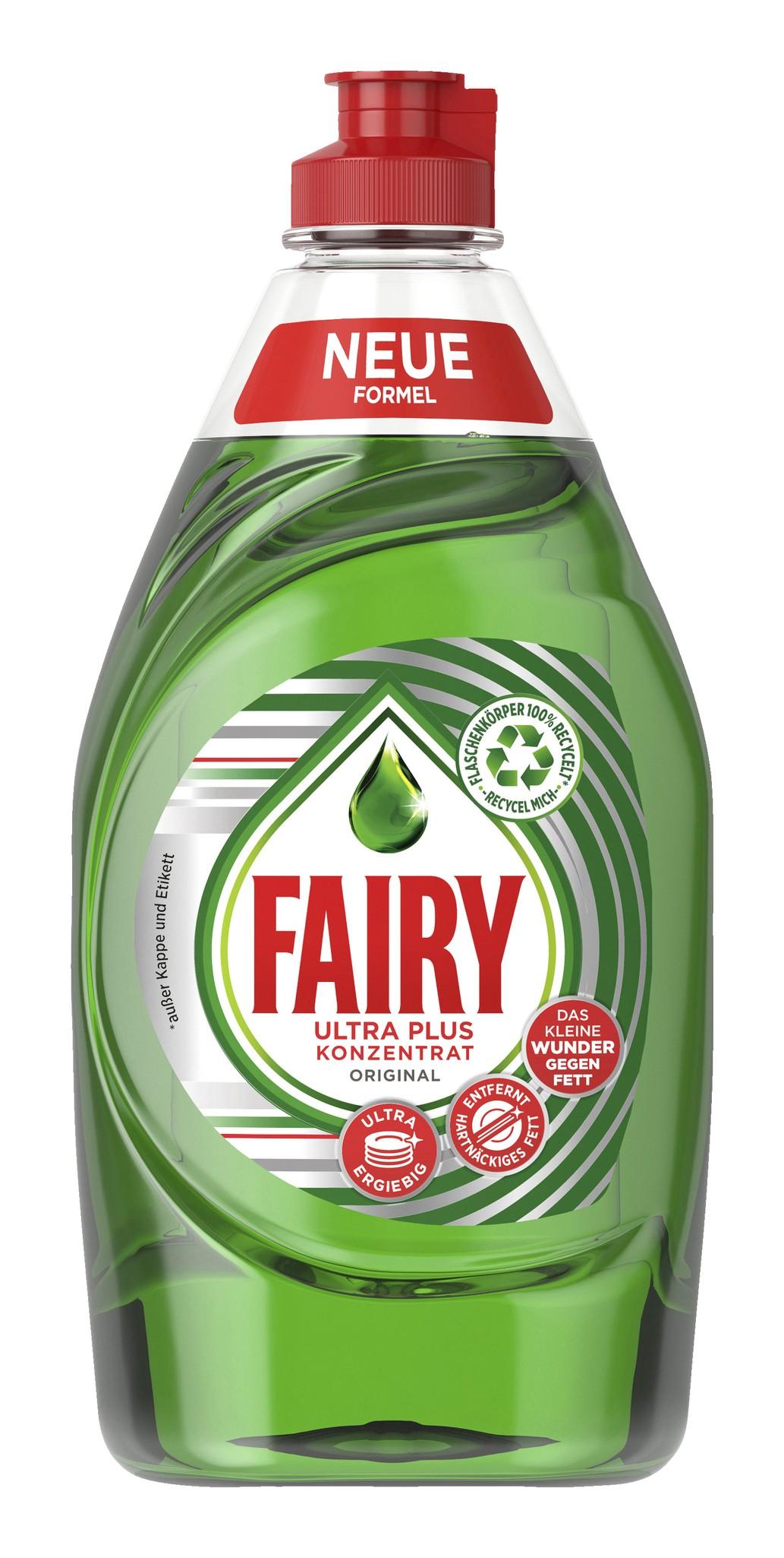 Fairy bietet die Reinigungskraft, auf die Sie sich beim Abwasch verlassen können. Die Ultra konzentrierte Formel löst Fett sofort, für strahlend sauberes Geschirr. Ein Tropfen Fairy Spülmittel ist so ergiebig, dass er 50% mehr fettiges Geschirr reinigt als nicht-konzentrierte Einzelhandelsmarken (im Vergleich zu nicht-konzentrierten Handelsmarken in 1-Liter-Flaschen mit empfohlener Dosierung von 4 ml/5 l oder mehr).