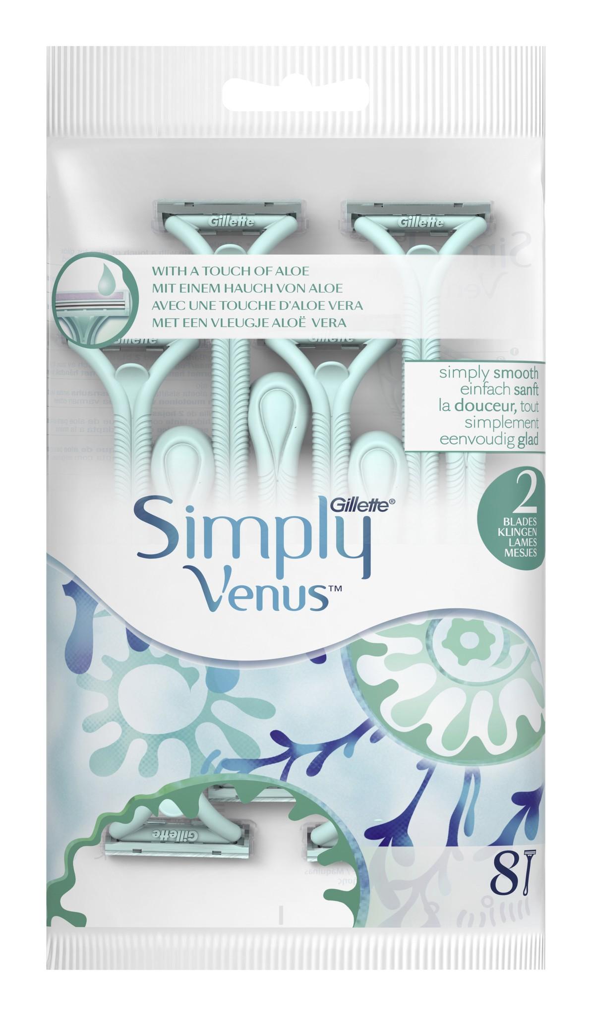 Gillette Simply Venus 2 Einwegrasierer für Damen ermöglichen eine gründliche, glatte Venus-Rasur. Die Einwegrasierer mit 2 Klingen und Feuchtigkeitsstreifen mit einem Hauch von Aloe für leichtes Gleiten schenken ein unglaubliches Verwöhnerlebnis bei jeder Rasur.