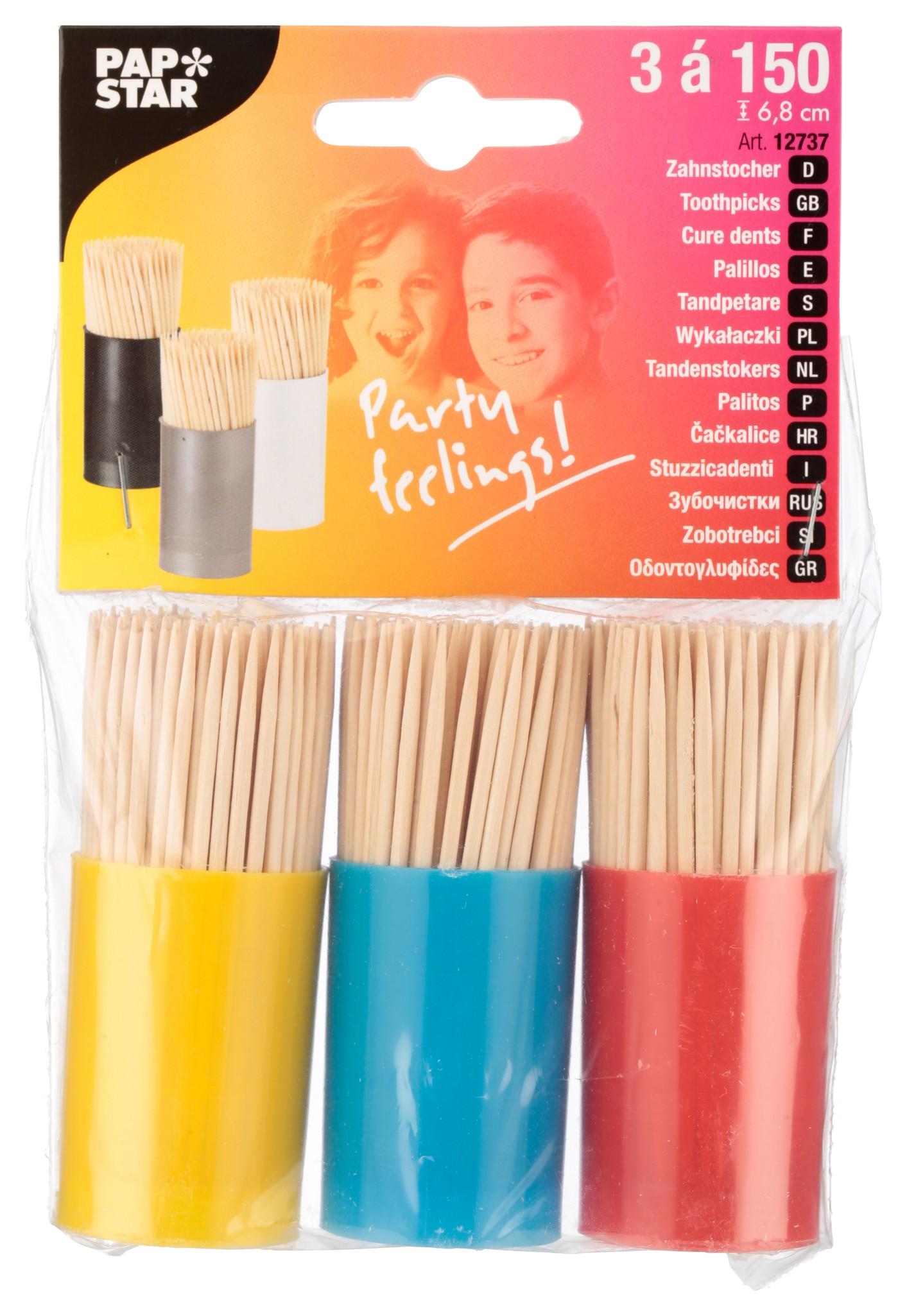 Pap Star Zahnstocher Holz rund 6.8cm 3 x 150 Stück