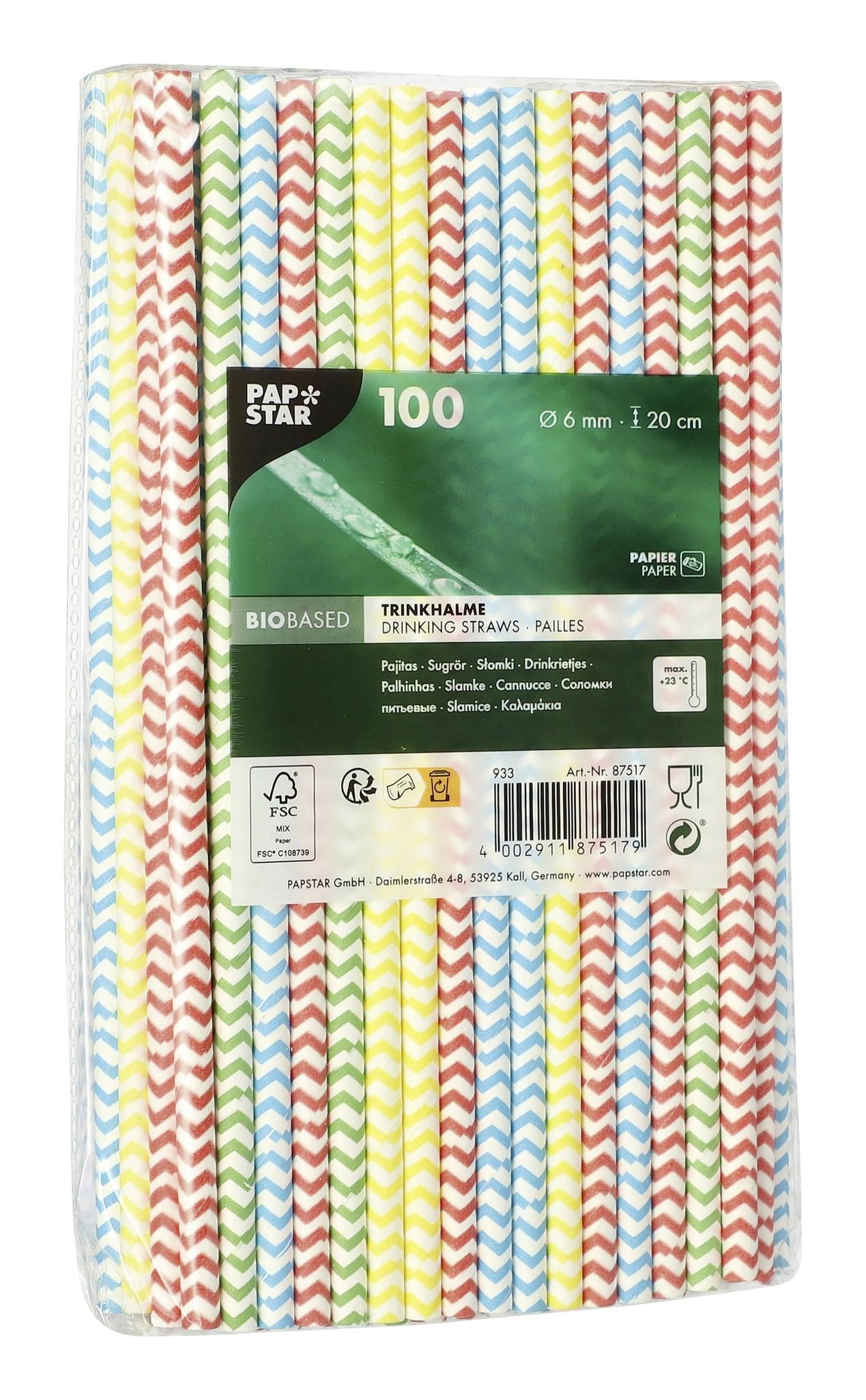 Trinkhalme Pap Star Papier 6mm 20cm 100Stk Zigzag bunt